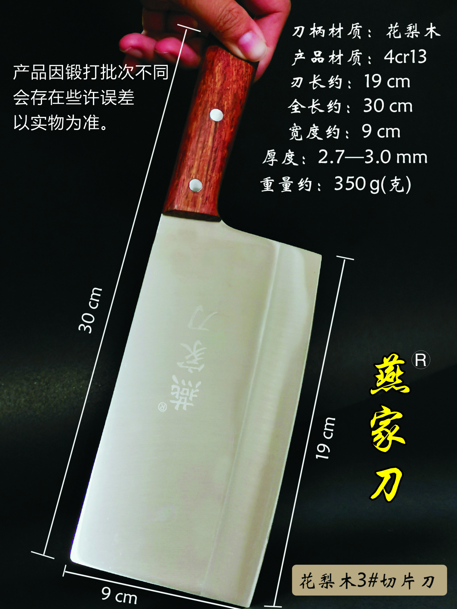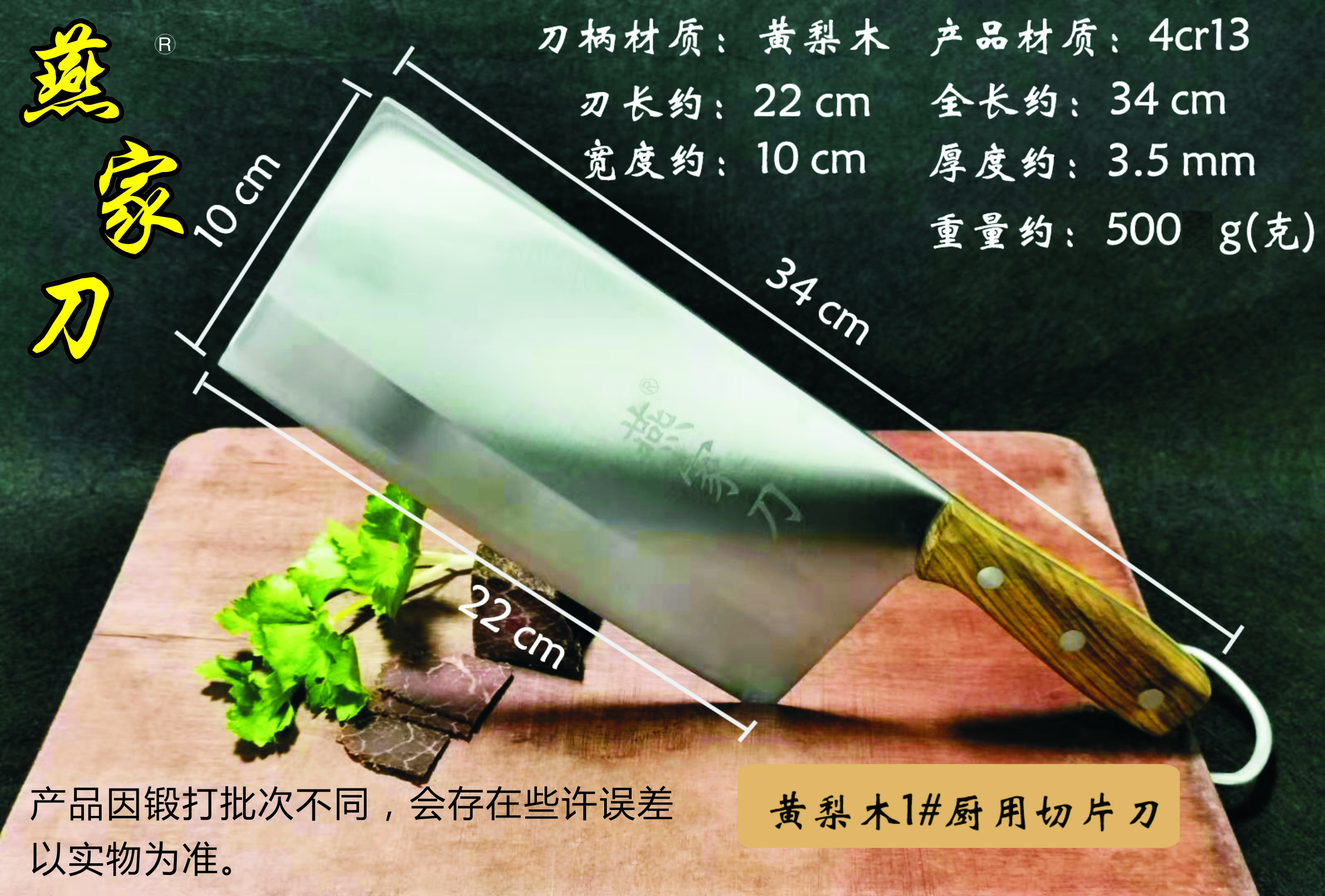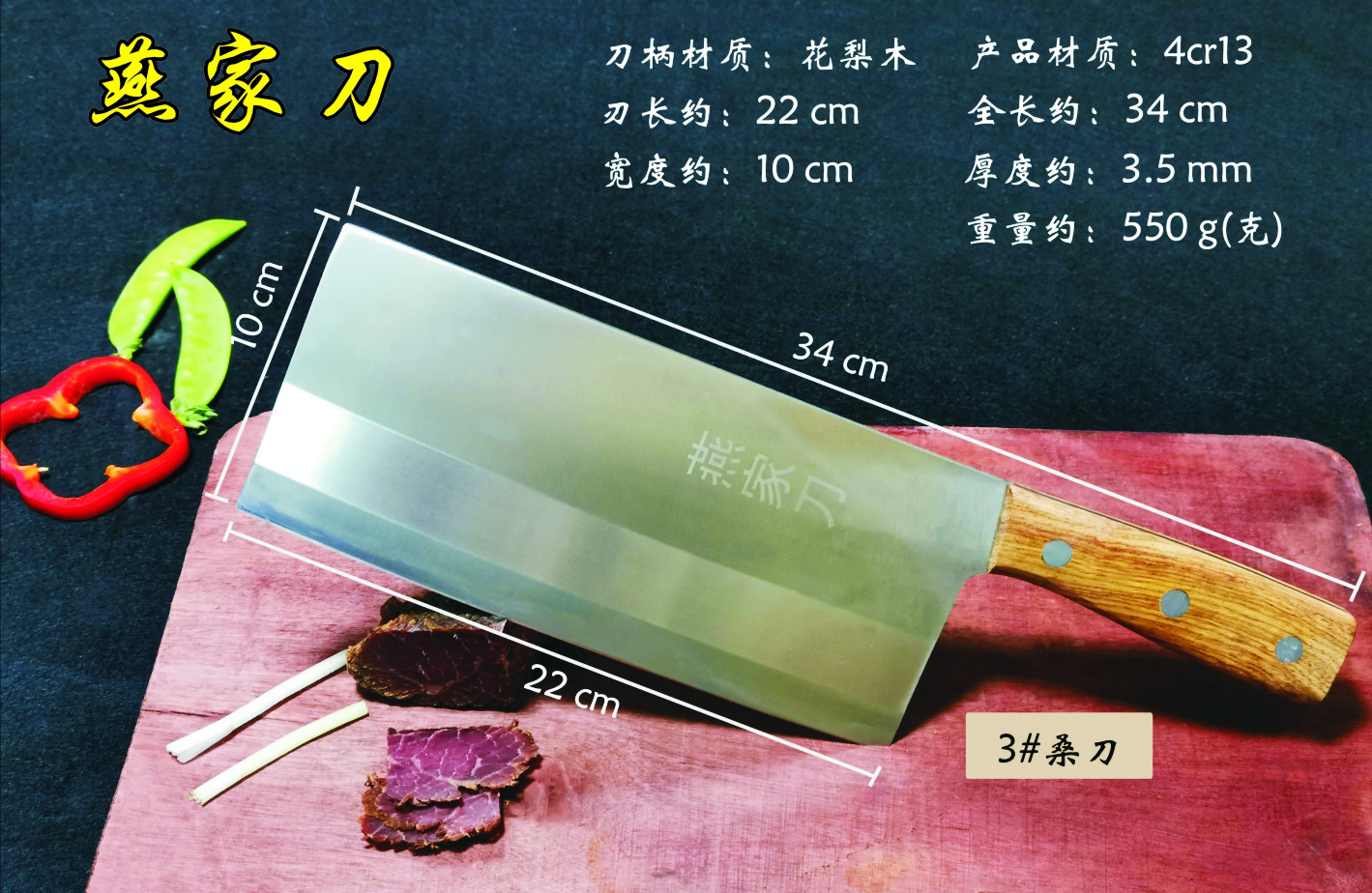 樂山燕家刀具有限公司(公司前身為燕佳鐵匠鋪),公司坐落于美麗的佛都之鄉(xiāng)樂山嘉州,在全國(guó)各地有上千家代理經(jīng)銷點(diǎn),公司專業(yè)銷售、設(shè)計(jì)、制作各類刀具。秉承一貫鍛造三精要求,即選料精、用料精、工藝精。所選材料全部產(chǎn)自滇東鐵礦優(yōu)產(chǎn)區(qū)。本品牌刀具堅(jiān)持千挑萬選為材,千錘百煉為刀的手工鍛造工藝宗旨。具有鋒利耐磨、持久耐用,用料上乘,硬度高、韌度強(qiáng)的特點(diǎn)!